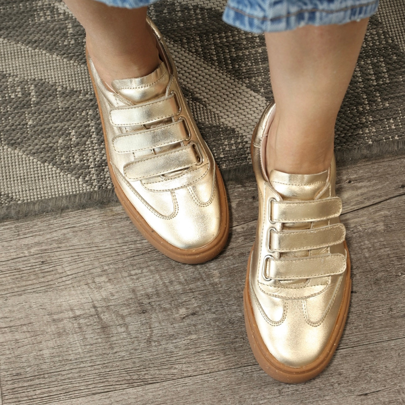 Halinka es una zapatilla cómoda y con estilo para usar todos los días. Tiene un acabado suave y tres correas de velcro para un buen ajuste sin cordones. El interior acolchonado te mantiene cómoda todo el día.