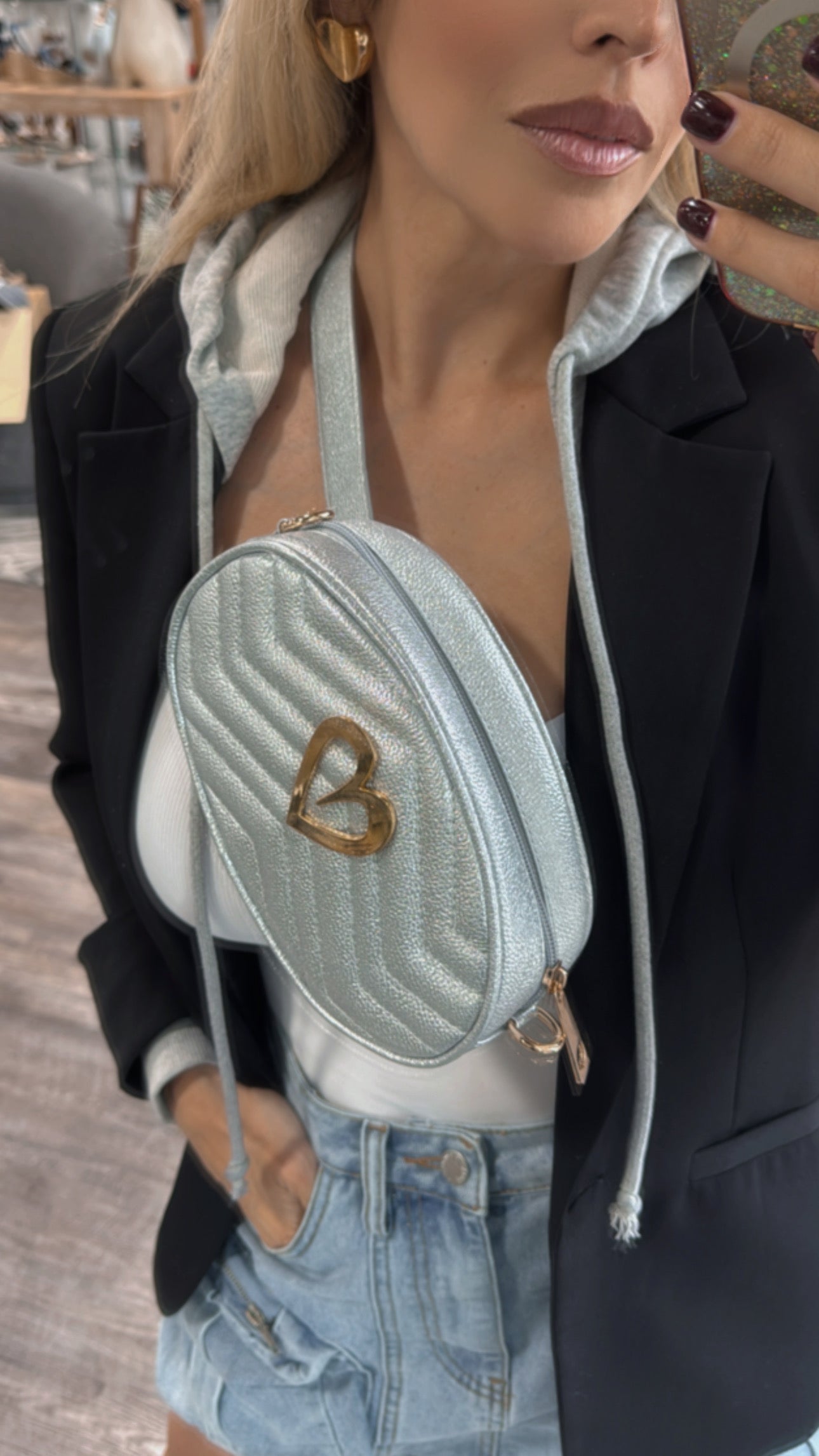 Este crossbody bag versatil es mucho más que un accesorio con estilo. El detalle del corazón y las dos correas te permiten llevarlo de múltiples formas para adaptarlo a tu estilo personal.