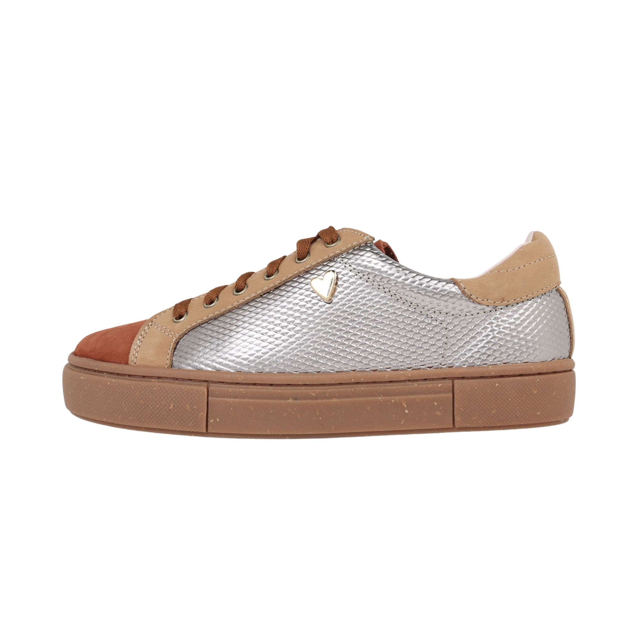 Gaia is a bold reinterpretation of the classic sneaker—designed for women who love to mix comfort with standout style. With contrasting textures, metallic finishes, and earthy tones, this shoe brings a fresh, fashion-forward twist to your everyday look. Gaia adds a unique flair to any outfit while keeping your steps grounded and comfortable.