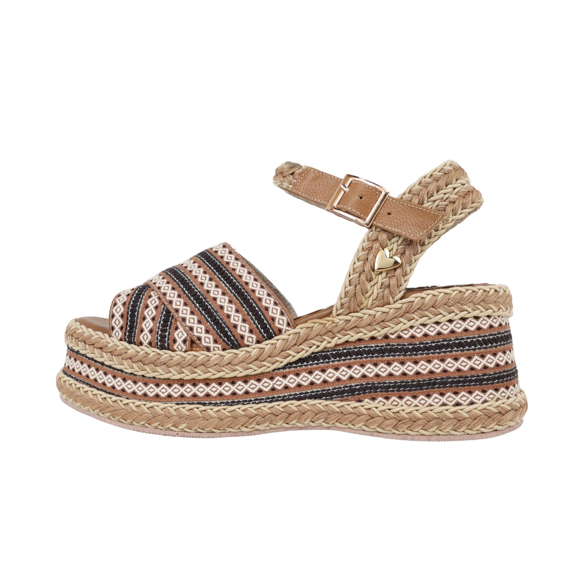 Kamila Sandals - Camel by Nataly Mendez, Jute upper material, Leather insole lining, 3 inch heel height, 1.8 inch platform, Slip-on style Kamila Sandals - Camel
