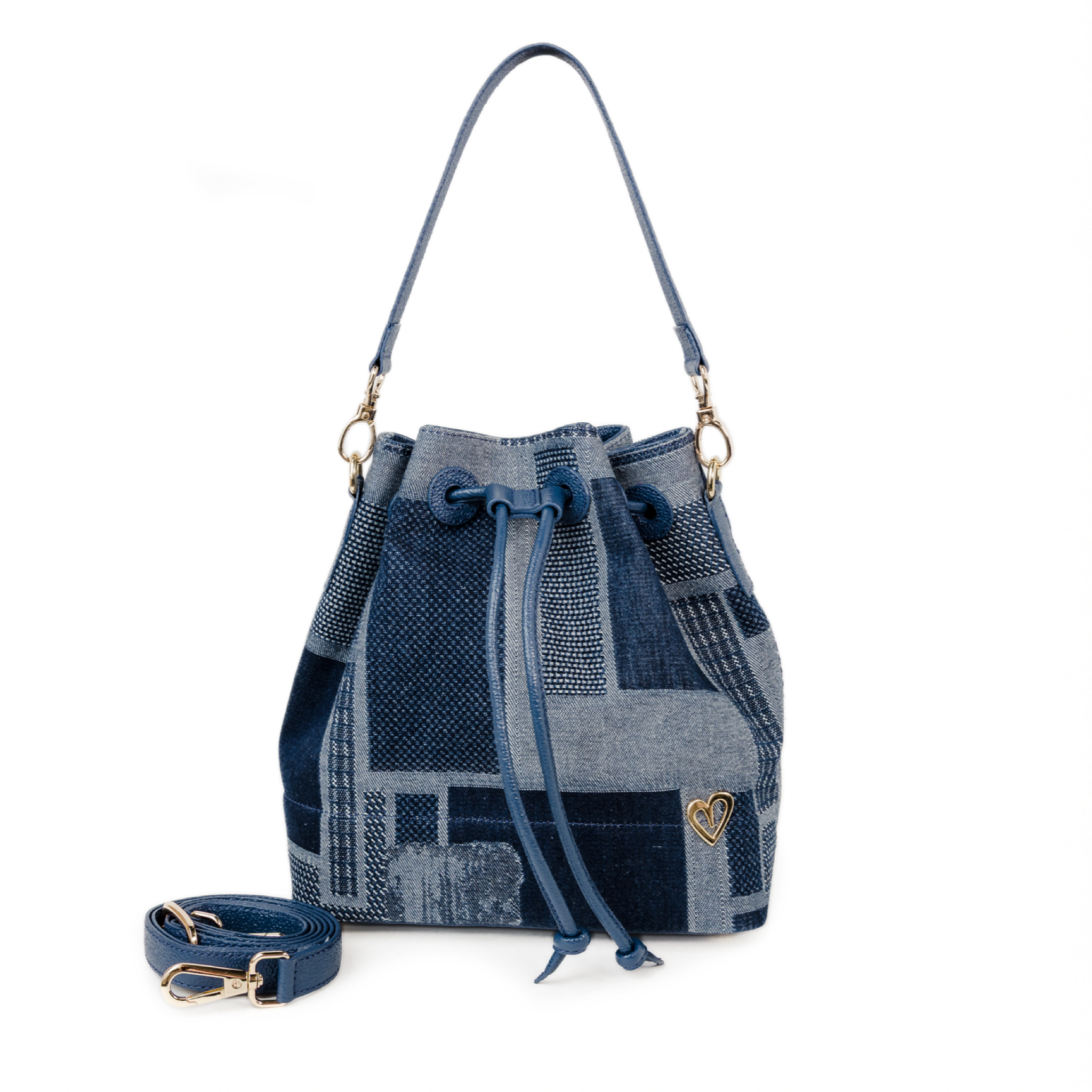 Designed to blend style and functionality, this bucket bag features a durable canvas body with genuine leather details that add a refined touch. Its classic drawstring silhouette makes it a versatile everyday essential.